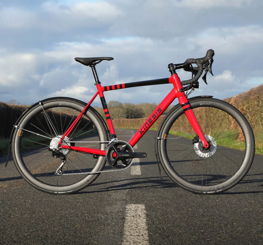 Tout d’abord, aucun changement n’est notable dans le design comparé à la version précédente. Pour 2026, Kinesis UK a choisi une couleur rouge et noire (Rouge poivre) brillante; seul choix disponible pour les acheteurs. La nouveauté la plus importante elle, n’est pas visible mais réside dans la nature de la matière en aluminium utilisée pour fabriquer le cadre. Cette fois-ci, nous avons droit à de l’aluminium 6069 au lieu du scandium. Kinesis UK vend toujours son RTD en version kit cadre à monter soit même selon ses envies et ses moyens uniquement. Et personnellement, c’est exactement ce dont j’ai besoin. Donc, si vous voulez commander un modèle RTD en vélo complet vos options sont très limitées. Une seule boutique à vélo au monde est capable de vous satisfaire pour des montages vélos complets à partir d’un cadre nu et basée en… Angleterre! C’est EPIC CYCLES (UK) située à Ludlow.